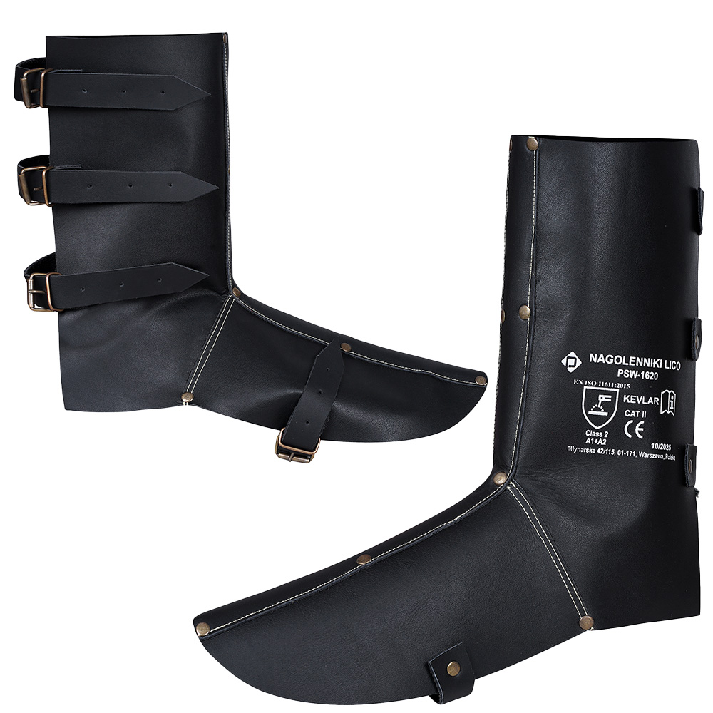 Nagolenniki spawalnicze PSW-1610 przeznaczone do ochrony podczas procesów spawalniczych (TIG, MIG/MAG, MMA) oraz pokrewnych o porównywalnych zagrożeniach.